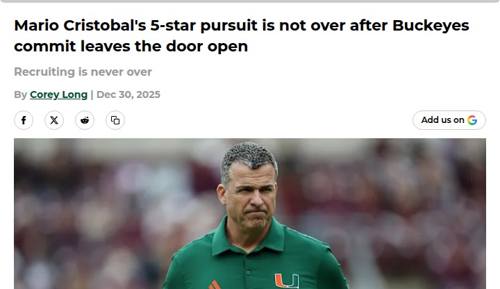 Aaron Taylor+FollowMiami vs Ohio State: DJ Jacobs DramaSo, Canes fans, the DJ Jacobs saga isn’t over yet! The 5-star edge rusher—son of former Dawg David Jacobs—just gave his verbal to the Buckeyes, but left the door wide open for Miami. Mario’s not backing down, and with Jacobs planning more visits, this recruiting battle is far from settled. The real action starts now—let’s see if the U can flip him before signing day! #Sports #Football #MiamiHurricanes00Share