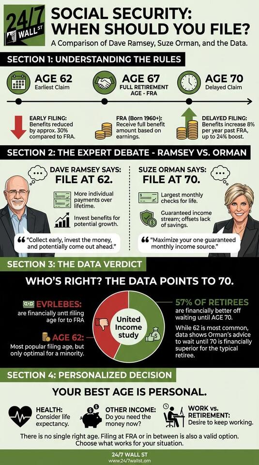 Joseph Livingston+FollowShould You Grab Social Security Early or Wait?Coffee break question: Would you rather get smaller Social Security checks sooner, or wait for bigger ones later? Dave Ramsey says cash in at 62, but Suze Orman says hold out until 70 for fatter monthly payments. The numbers actually back Suze—most folks end up with more money if they wait. But hey, it’s your call: health, savings, and lifestyle all matter. Just don’t sleepwalk into a decision! #Business #MakeMoney #MoneyHacks11Share