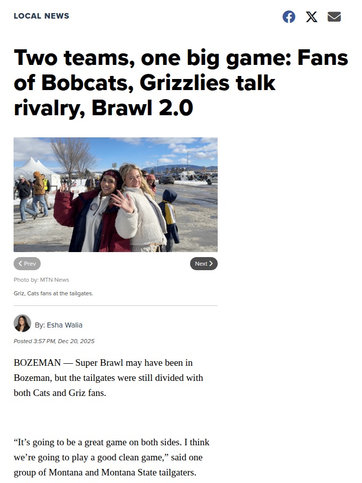 Bruce Johnson+FollowMontana’s Cats vs Griz rivalry hits new heightsMontana’s biggest football rivalry just made history—Bobcats and Grizzlies faced off in the FCS playoffs for the first time ever, drawing fans from all over the country. The energy in Bozeman was electric, with old friends divided by team colors but united by state pride. Even with the fierce competition, folks on both sides found reasons to appreciate their rivals, from friendly tailgates to the beauty of Missoula. No matter the outcome, everyone agreed: this is the biggest sporting event Montana has seen in years. How do you see this rivalry shaping Montana’s sports culture? #Sports #MontanaFootball #CatsVsGriz00Share