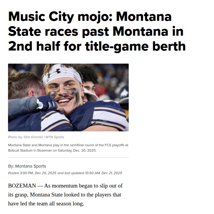Christopher Hughes+FollowHomegrown heroes lift Montana State to FCS finalMontana State’s run to the FCS championship is powered by local talent, and it’s changing the game for football in our state. Saturday’s playoff win over Montana wasn’t just a victory—it was a showcase of homegrown players making the biggest plays when it mattered most. From Adam Jones’ explosive runs to Taco Dowler’s 87-yard touchdown, these Montana kids are showing that investing in local athletes pays off. It’s more than football; it’s about pride and community. How do you feel seeing hometown players lead the way on the national stage? #Sports #Football #MontanaState00Share