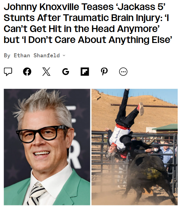 Mrs. Kelli Gutierrez+FollowKnoxville’s ‘Jackass 5’ Comeback?! 🤯Johnny Knoxville says he can’t take head hits anymore after that brutal bull stunt, but he’s still hyped for ‘Jackass 5’—just not risking another brain injury. The real twist? Bam Margera is back (sort of), but only in old footage after years of drama with the crew. Fans are already debating if the new cast can keep the chaos alive without the OGs doing the wildest stunts! #Entertainment #Movies #JohnnyKnoxville20Share