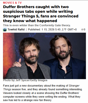 Jason Curtis+FollowDuffer Bros’ Suspicious Tabs in ST5 Doc 👀Duffer Brothers’ laptops in the new Stranger Things 5 documentary have fans spiraling. People spotted both ChatGPT and Reddit tabs open during a writing session, sparking wild theories about AI and fan input shaping the finale. Some are worried the ending wasn’t original, while others think they were just checking fan theories. The debate is heating up, especially with Eleven’s fate still unclear! #Entertainment #Movies #StrangerThings500Share