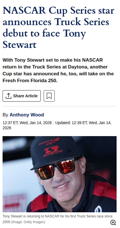 romankimberly+FollowStenhouse Jr. vs Smoke: Truck Series ShowdownNASCAR fans, get ready for a Daytona clash! Ricky Stenhouse Jr.—the 2023 Daytona 500 champ—will make his long-awaited Truck Series debut at the Fresh From Florida 250, going wheel-to-wheel with the legendary “Smoke” Tony Stewart. With both stars eyeing a win at the iconic track, this Cup-to-Truck rivalry is set to ignite the season opener. Who’s your pick to take the checkered flag? #Sports #Racing #NASCAR10Share