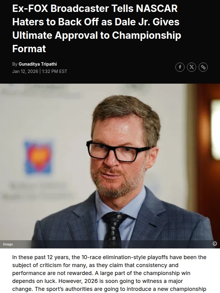 jennifer23+FollowDale Jr. & Mark Martin Back NASCAR ShakeupBig news for NASCAR fans! After years of heated debate over the playoff format—especially after Denny Hamlin’s tough 2025 loss—the sport is finally making a change. With legends like Dale Jr. and Mark Martin giving their stamp of approval, it looks like NASCAR is moving away from the elimination-style playoffs. Kenny Wallace says it’s time for critics to chill—NASCAR’s listening and aiming for a fairer, more exciting championship. What do you think of the rumored new format? #Sports #Racing #NASCAR50Share