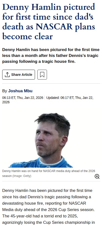 jennifer23+FollowHamlin’s Heartbreak: Will No. 11 Rise Again?Tough offseason for Denny “The Dominator” Hamlin—first, that crushing Cup Series loss to Yung Money (Larson) after a late caution, then the tragic loss of his dad. Now, with the Chase format back and the No. 11 suited up for media day, fans are rallying behind Denny. Can he channel all that emotion and finally bring home the big one for his family? 2026’s shaping up to be a season to remember. #Sports #Racing #NASCAR00Share