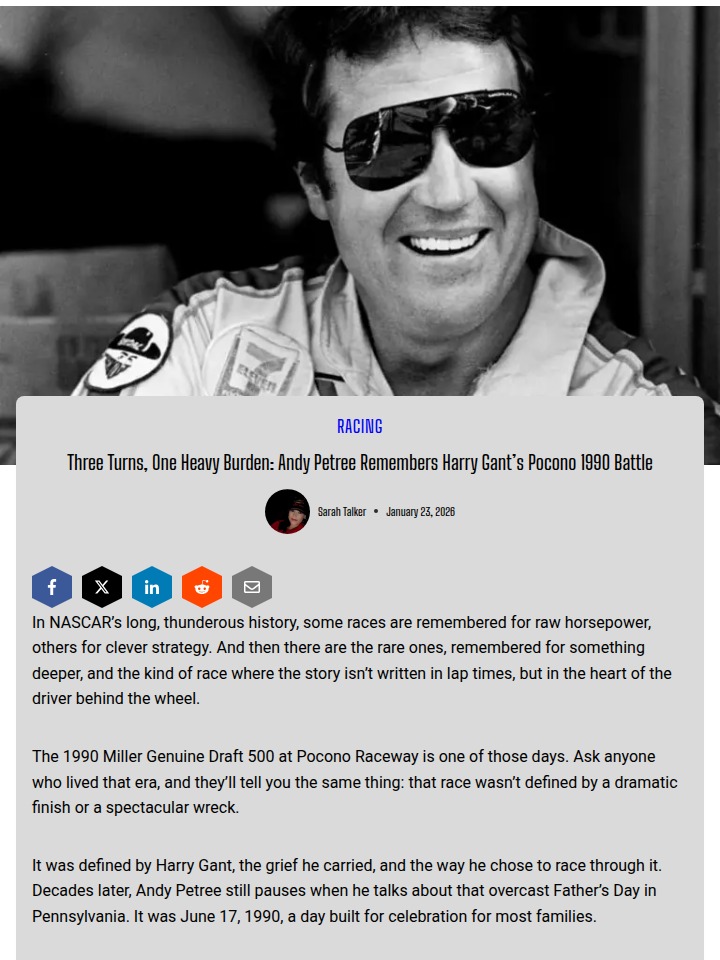 Jason Smith+FollowHarry Gant’s most powerful race everHarry Gant’s 1990 Pocono win wasn’t just another NASCAR victory—it was a raw, emotional tribute to his late father. Just days after his dad passed, Gant strapped into his car on Father’s Day and raced with a focus his crew chief Andy Petree had never seen before. The stats will always show a win, but what made that day unforgettable was the heartache Gant carried and the way he turned grief into grit on the track. It’s a reminder that racing is about more than speed—it’s about the people behind the wheel. What moments in sports have moved you like this? #Sports #Racing #NASCAR00Share