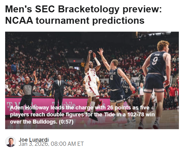 EchoingEagle+FollowSEC Hoops: Can Vandy Crash the Final Four?Remember when the SEC was a three-bid league? Those days are long gone. After last year’s historic double 1-seeds and two teams in the Final Four, the SEC’s basketball rep is sky-high. But can the Dores or Bama keep the league’s streak alive, or will the likes of the Vols and Razorbacks shake things up? Early showdowns like Bama vs. Vandy on Jan. 7 could set the tone for a wild ride! #Sports #SEC #NCAABasketball00Share