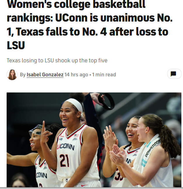 GalacticGiraffe+FollowTexas vs LSU: Tigers Shake Up the RankingsWow, what a week in women’s college hoops! The Lady Longhorns finally took their first L, and it was the Bayou Bengals who handed it to them. LSU’s win bumps Texas down to No. 4, but it’s not a season-ender. Meanwhile, UConn’s Huskies are now the undisputed No. 1. This Texas-LSU rivalry just keeps delivering drama! Who’s got the edge if they meet again? #Sports #NCAAWBB #TexasvsLSU00Share