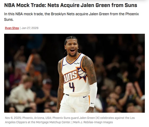 Susan Reeves+FollowNets Eye Jalen Green: Game-Changer Move?Brooklyn fans, how would you feel about Jet Green landing in BK? This mock trade has the Nets sending MPJ and picks to the Suns for the high-flying scorer. If it happens, Green could instantly become our go-to bucket-getter and give us the kind of young star we’ve been missing. Do you think Jet’s isolation game and athleticism are the missing piece, or is this too big a gamble? Let’s talk! #Sports #Basketball #NetsNation00Share