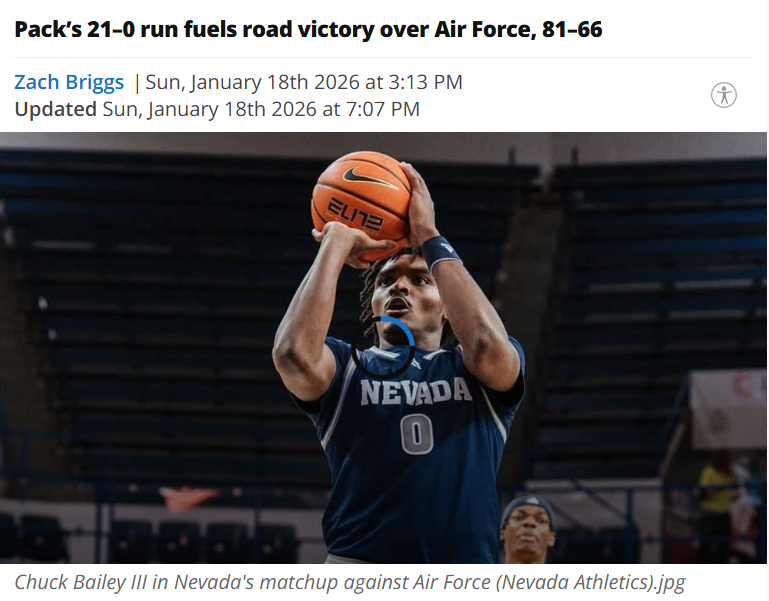 EchoingEagle+FollowNevada’s 21-0 run stuns Air Force fansNevada basketball fans, that 21-0 first-half run against Air Force was something else! Corey Camper Jr. led the charge with 23 points and nearly grabbed a double-double, helping five Wolf Pack players hit double figures. The Pack’s energy after Coach Alford’s timeout totally flipped the game, and their 53% shooting and 36-21 rebounding edge sealed the deal. Meanwhile, Air Force played without their head coach due to a sudden suspension. With Nevada now 5-2 in conference, how do you feel about their momentum heading into the next stretch? Who’s your pick for MVP so far this season? #Sports #NevadaWolfPack #MountainWest00Share