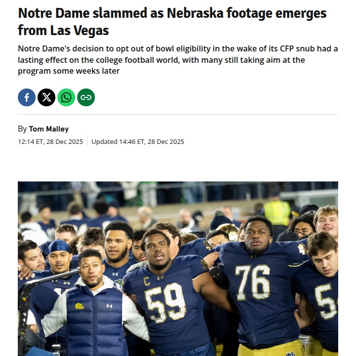 Jay Williams+FollowNotre Dame’s Bowl Snub: Did They Let the Team Down?The Fighting Irish faithful are fired up after Notre Dame’s decision to skip bowl season following their CFP snub. Meanwhile, Nebraska’s Cornhuskers are soaking up the Vegas vibes, sharing holiday joy and team bonding before their big game. Fans are questioning if Marcus Freeman’s move cost seniors a final shot and the team a special experience. Was this the right call, or did ND drop the ball? #Sports #Football #NotreDame00Share