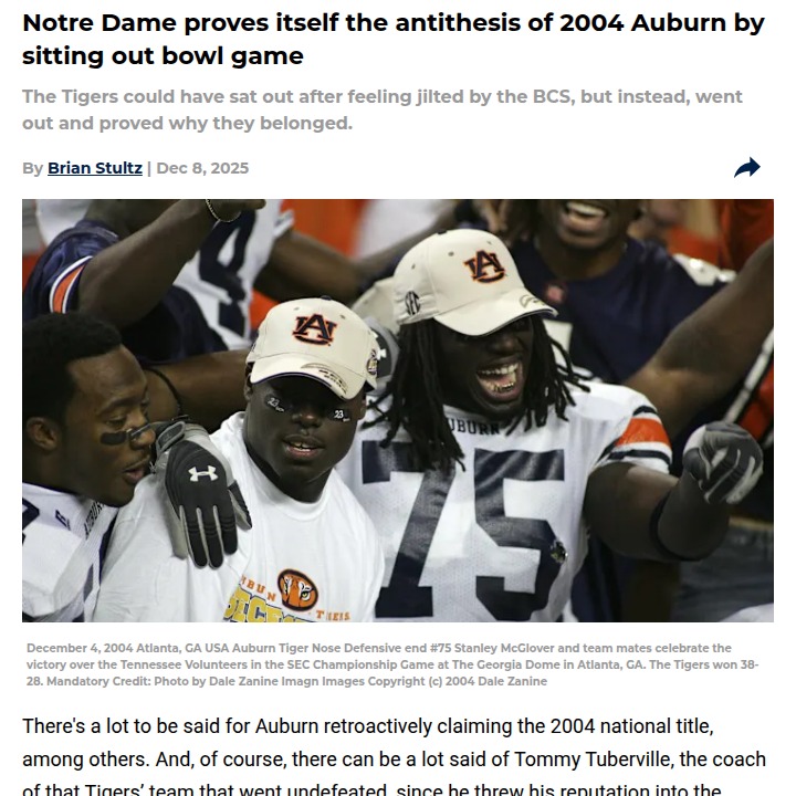 phughes+FollowNotre Dame Bows Out: CFP Snub FalloutWow, Irish fans, this one stings. After being left out of the 12-team College Football Playoff, Marcus Freeman and the Fighting Irish decided to skip their bowl game altogether. Unlike the legendary 2004 Auburn squad that played for pride after their own BCS snub, Notre Dame’s move feels like quitting on the fans and Jeremiyah Love’s last ride. Is this a lack of leadership, or just the new normal in college football? Let’s hear your takes! #Sports #Football #NotreDame00Share