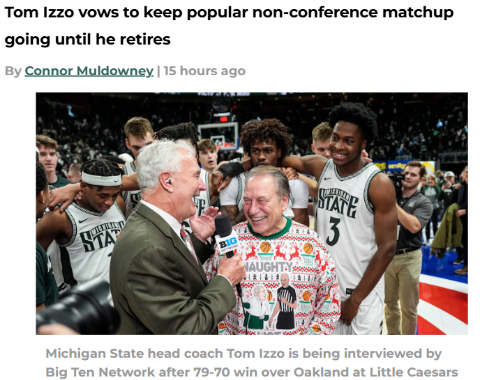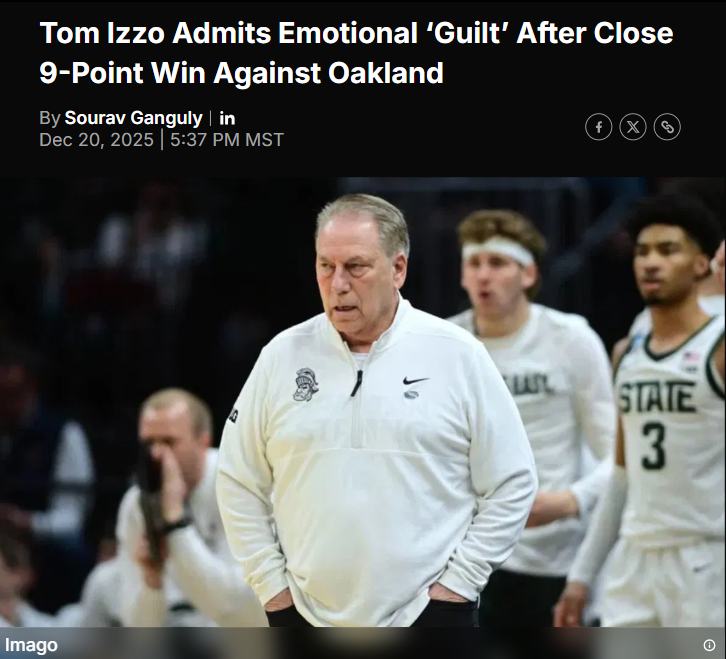 EchoingEagle+FollowIzzo and Kampe’s holiday rivalry heats upTom Izzo and Greg Kampe brought their legendary friendship—and some seriously bold Christmas sweaters—back to the court as Michigan State edged out Oakland 79-70. Despite the Spartans’ perfect 24-0 record against Oakland, Izzo admitted feeling a twinge of guilt after another close battle. The real story, though, is how these coaches have turned their annual matchup into a festive tradition, complete with ugly sweaters and mutual respect. On the court, rebounding made the difference for MSU, but fans are buzzing about Jeremy Fears Jr.’s quiet night. How do you feel about coaches showing this much camaraderie in a rivalry? #Sports #MichiganState #OaklandGrizzlies00Share