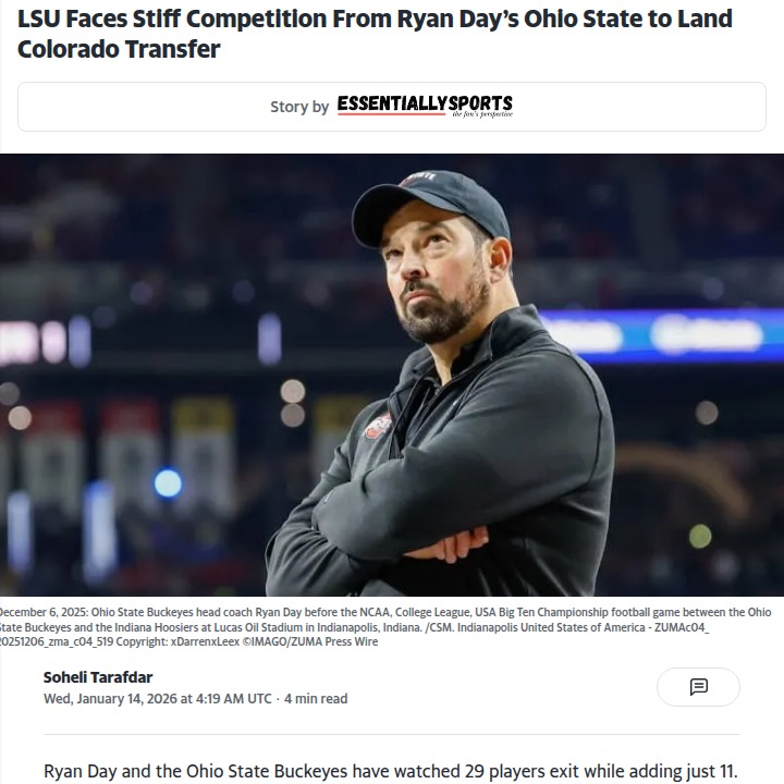 John Camacho+FollowBuckeyes vs Tigers: Staub Transfer ShowdownLooks like Coach Day and the Buckeyes are in a heated race with the Bayou Bengals for Colorado’s Ryan Staub. With King Day’s QB room looking thin after Kienholz’s exit, Staub could be the missing piece. But LSU’s also rolling out the red carpet. Add Kentucky and Cincinnati to the mix, and this portal battle is getting spicy. Where do you think Staub lands? #Sports #Football #OhioState00Share