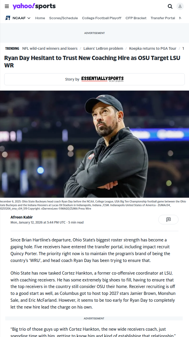 Aaron Taylor+FollowOhio State’s WRU legacy faces a real testLosing five wide receivers to the portal has put Ohio State’s legendary WR room in a tight spot. With Brian Hartline gone, Ryan Day isn’t ready to hand the reins to new hire Cortez Hankton just yet—even as Hankton’s already making moves with top 2027 recruits and even targeting LSU’s Kyle Parker. The pressure is on to keep OSU’s reputation as ‘WRU’ alive, and how Hankton connects with these young stars could shape the Buckeyes’ future. Do you think OSU can keep its WR pipeline rolling, or is a new era on the horizon? #Sports #Football #OhioState00Share