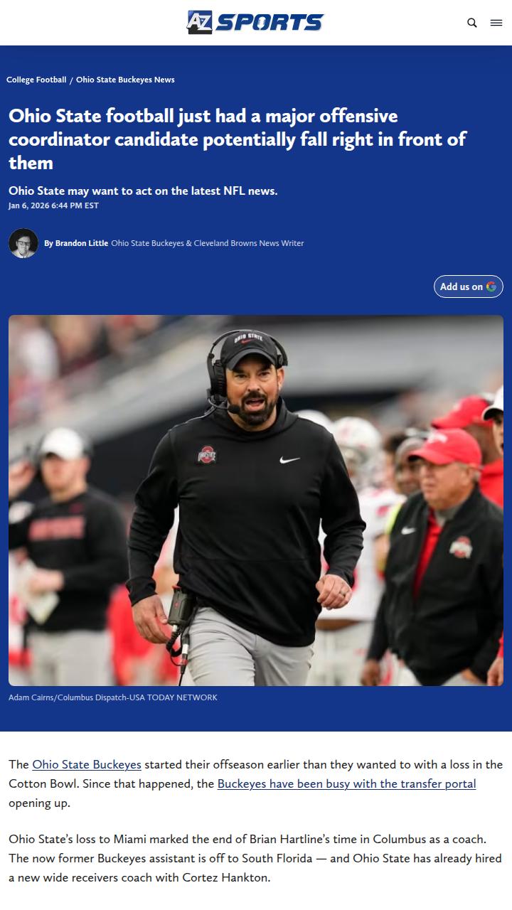 glen25+FollowOhio State eyes Todd Monken for OC shakeupBig news for Buckeye Nation: with Brian Hartline gone, Ohio State is eyeing a major move by possibly bringing in Todd Monken as offensive coordinator. Monken, fresh off his stint with the Ravens and two national titles at Georgia, could bring serious firepower to Columbus—especially since he wouldn’t have to worry about recruiting. If Ryan Day pulls this off, it could set up the Buckeyes for a huge 2027 season with stars like Julian Sayin and Jeremiah Smith. Would Monken’s NFL experience be the missing piece for Ohio State’s offense? Let’s hear your thoughts! #Sports #Football #OhioState10Share