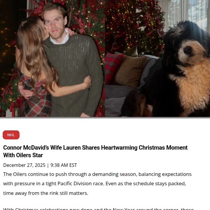 Sherri West+FollowInside Connor McDavid’s Edmonton holidayEven with the Oilers in the thick of a playoff push, Connor McDavid and his wife Lauren Kyle found time to slow down and share a cozy Christmas at home in Edmonton. Lauren’s Instagram post gave fans a rare peek into their off-ice life—just good food, their dog Lenny, and some well-earned downtime. It’s a reminder that even hockey’s biggest stars need a break from the grind. How do you balance work and personal time during busy seasons? Do you think these quiet moments help athletes stay at the top of their game? #Sports #IceHockey #Oilers10Share