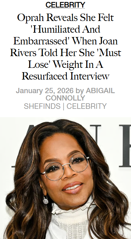 Amanda Robbins+FollowOprah Calls Out Joan Rivers' Fat-Shaming 😳Oprah just dropped a bombshell about her past struggles with body image, revealing how humiliated she felt when Joan Rivers publicly shamed her about her weight on TV in the '80s. Fans are split—some say Joan was just being her usual blunt self, while others think she crossed a line. Is it fair to call out celebs for their weight, or was this just cruel? #Entertainment #Celebrity #OprahWinfrey00Share