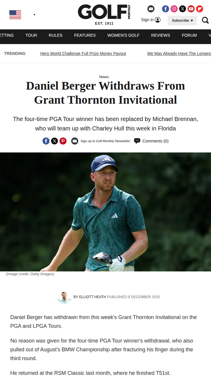 Michael Singh+FollowBerger Bows Out—Hull Teams With BrennanTough break for D. Berger fans—he’s pulled out of the Grant Thornton Invitational, just when we thought he was back in form after that long injury layoff. The real shakeup? World No.5 Charley Hull now pairs with bomber Michael Brennan, fresh off his Bank of Utah win. This new duo could be a wildcard in a field stacked with big names and past champs. Anyone else think Hull/Brennan could surprise us this weekend? #Sports #Golf #PGATour10Share