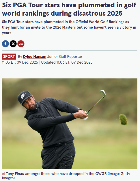 Gabriella Gonzalez+FollowFinau’s Freefall: What’s Next for the PGA’s Big Names?Golf fans, are we witnessing the end of Tony Finau’s rise? Once seen as the next big thing after playing with Tiger at the Masters, Finau’s 2025 season has been rough—dropping from 26th to 89th in the world rankings with just one top-five finish. Meanwhile, Adam Scott and Billy Horschel are also struggling to stay relevant. Is this just a slump, or are we seeing a new era on Tour? Let’s talk about who can bounce back and who’s in real trouble. #Sports #Golf #PGATour00Share