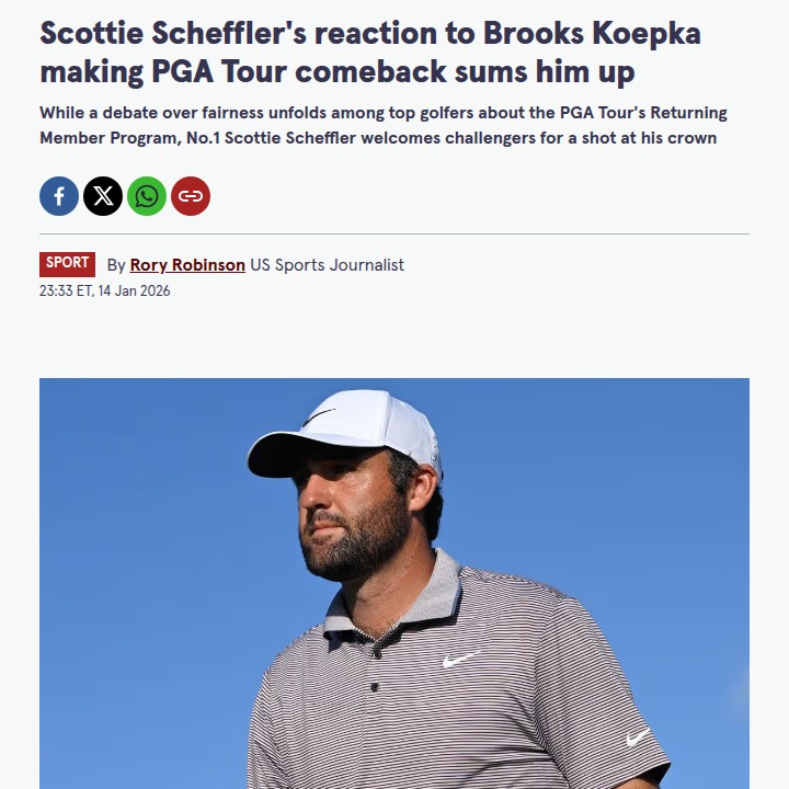 Heather Garcia+FollowScheffler Welcomes Koepka Back to PGA TourWorld No. 1 Scottie Scheffler’s reaction to Brooks Koepka’s PGA Tour comeback was pure class—no drama, just respect. While fans and media buzzed, Scheffler simply called it a “smart move,” showing he’s all about competing against the best. Koepka’s return comes with hefty penalties, but even Tiger gave his nod. This rivalry just got a fresh twist, and the Tour’s about to get even more stacked! #Sports #Golf #PGATour20Share