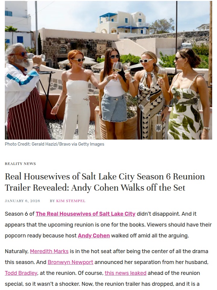 Caitlyn Morrow+FollowAndy Cohen storms off RHOSLC reunionAndy Cohen literally walked off the set during the Real Housewives of Salt Lake City Season 6 reunion—talk about drama overload! This three-part special is packed with jaw-dropping moments: Meredith is grilled over her season-long antics, Bronwyn drops news about her separation, and Heather shuts down rumors with her signature sass. Emotions run high as Whitney breaks down and Mary Cosby shares a heartbreaking update about her son. With accusations flying and friendships imploding, this reunion might be the wildest yet. Who’s side are you on, and what moment shocked you most from the trailer? #Entertainment #TVSeries #RHOSLC00Share