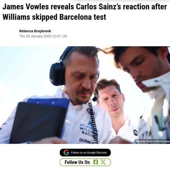 Victor Mathews+FollowSainz’s Frustration as Williams Skips TestInteresting move from Williams skipping the Barcelona shakedown—especially with Smooth Operator Sainz itching to get some laps in. Team boss Vowles says Sainz was quick to ask how he could help, even though he was just as frustrated as the fans. Williams is betting big on their 2026 car and Mercedes power, but will missing this early test put them behind rivals like Audi and Haas? Bahrain testing can’t come soon enough! #Sports #Racing #F100Share
