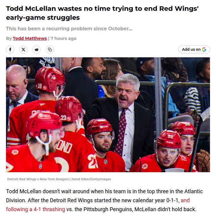 Sherri West+FollowRed Wings shake up lines to spark a turnaroundDetroit fans, you’ll want to keep an eye on the Red Wings’ next game—coach Todd McLellan isn’t waiting for things to fix themselves. After a rough start to the year and too many blowout losses, he’s mixing up the lines in a big way, moving key scorers like DeBrincat, Copp, and Kane to the top, and shuffling Larkin to the second line. It’s a bold move to break old habits and inject new energy before things spiral. Do you think this shakeup will finally give Detroit the consistency they need for a real playoff push? #Sports #IceHockey #RedWings00Share