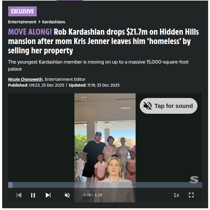 Chad Kemp+FollowRob Kardashian’s $21M mansion move shakes up Hidden HillsRob Kardashian just landed in a jaw-dropping $21.7 million mansion in Hidden Hills after his mom Kris Jenner sold the family home, leaving him to find new digs. This place is next-level: six bedrooms, ten bathrooms, a zero-edge pool, a home theater, and even a commercial elevator. What’s wild is the monthly mortgage—over $100K! The new spot keeps Rob close to Khloe and Kris, but there’s talk that family finances might be tangled up in the deal. Would you want to live this close to your family, or is that too much? Let’s hear your thoughts! #Entertainment #Celebrity #RobKardashian20Share