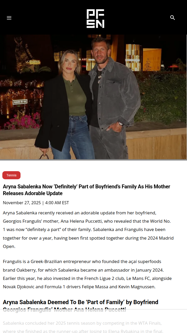 davidsonbrandon+FollowSabalenka’s Heartwarming Off-Court WinSaba fans, did you catch the latest off-court rally? World No. 1 Aryna “Saba” Sabalenka just scored big with her boyfriend Georgios Frangulis’ family. His mom, Ana Helena Puccetti, made it Insta-official: Saba is now “definitely a part” of their crew. After a stellar 2025 season, it’s great to see our champ finding love and support off the court. Anyone else think this family bond could be her secret weapon for 2026? #Sports #Sabalenka #TennisFamily10Share