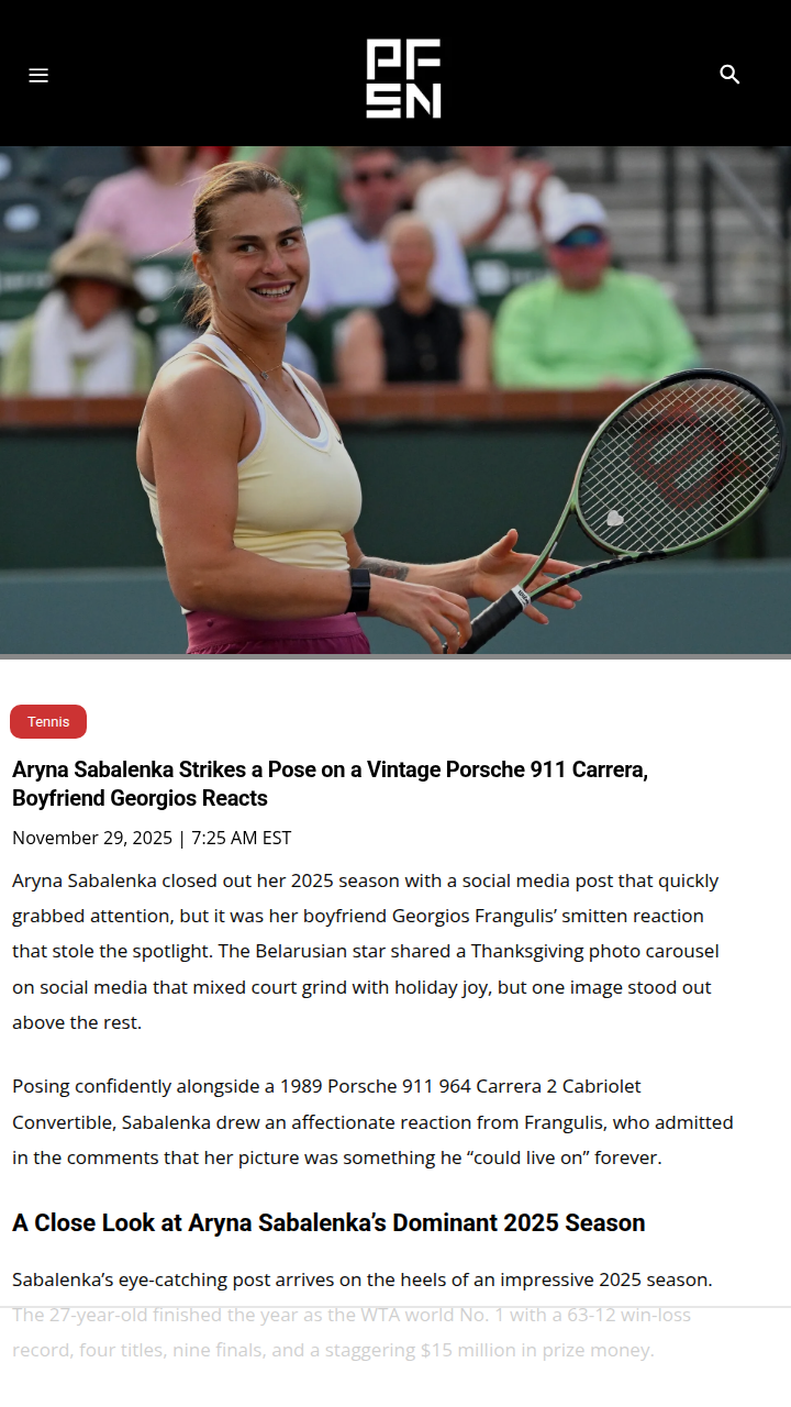 andersonkaren+FollowSabalenka’s Porsche Pose: No.1’s Off-Court WinSabalenka capped her dominant 2025 season (63-12, 4 titles, $15M) with a Thanksgiving photo drop, but it was her vintage Porsche 911 Carrera shot that had fans—and boyfriend Georgios—buzzing. The WTA queen’s post not only flexed her on-court grind but also gave a nod to her partner’s motorsport passion. With King Aryna showing off both trophies and classic cars, is this tennis’ new power couple era? #Sports #Sabalenka #WTA30Share
