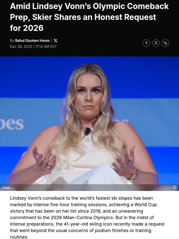 Dawn Fritz+FollowVonn’s Comeback: Queen of the Slopes Rises AgainLindsey Vonn, aka the Queen of the Slopes, just proved age is just a number! After a brutal injury and a six-year break, she came back with a vengeance, grabbing 2nd in the Super-G at Sun Valley and becoming the oldest woman to podium in a World Cup. Her honesty about frustration and doubt makes this comeback even more epic. Anyone else inspired to never count out a legend? #Sports #LindseyVonn #Skiing20Share