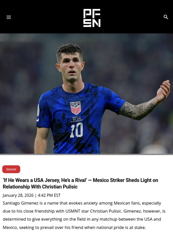 Charles Mills+FollowGimenez vs Pulisic: USA-Mexico Rivalry Heats UpSanti Gimenez just dropped some real talk about his friendship with Captain America, Christian Pulisic. Off the pitch, they’re tight, but once that USA-Mexico whistle blows, it’s all business—no friends, just rivals. Gimenez says the locker room banter is fierce, but national pride always comes first. With Santi recovering from surgery and aiming to come back stronger for Milan, all eyes are on how he’ll perform when the stakes are highest. Can he outshine Pulisic in the next big showdown? #Sports #Soccer #USAvMEX10Share