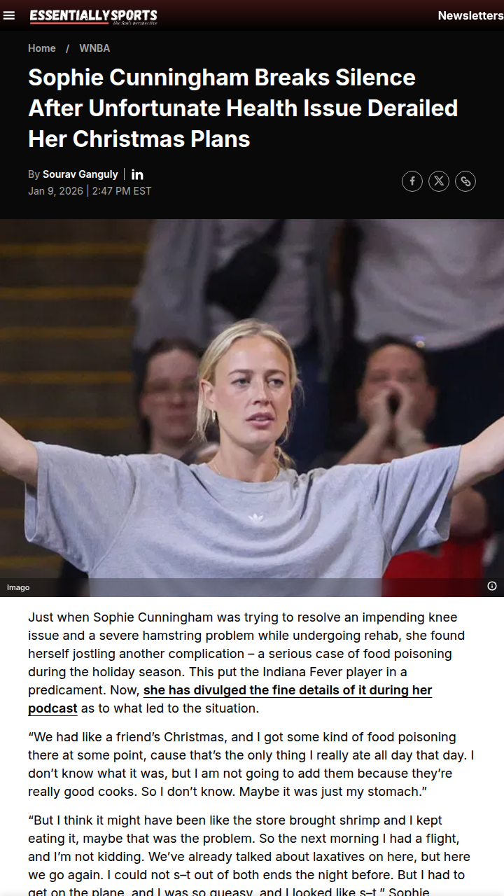 Eddie Deleon+FollowSophie Cunningham’s wild holiday setback and comebackSophie Cunningham’s holiday season was anything but restful—she battled food poisoning on top of tough knee and hamstring injuries, all while prepping for her annual basketball classic in Columbia. Even after a rough flight and days of rehab pain, she’s back in her hometown, hosting the Sophie Cunningham Classic, a major showcase for top girls’ high school teams. This event is more than just games; it’s a family-run platform for young talent to shine in front of college scouts. Anyone else think Sophie’s resilience is inspiring? How do you push through setbacks in your own life? #Sports #SophieCunningham #Basketball00Share