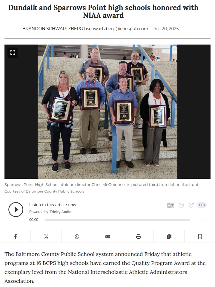 jharvey+FollowDundalk & Sparrows Point schools score bigDundalk and Sparrows Point high schools just set a new standard for local athletics, earning top honors from the National Interscholastic Athletic Administrators Association. Their programs stood out for not just winning games, but for building strong, safe, and inclusive sports communities—covering everything from mentoring student leaders to innovative coaching and sports medicine. This recognition isn’t just a trophy; it means more resources and ongoing improvements for our student-athletes. What do you think makes a truly great school sports program? Have you seen these changes in action? Let’s talk about what our schools need most! #Sports #Dundalk #SparrowsPoint00Share