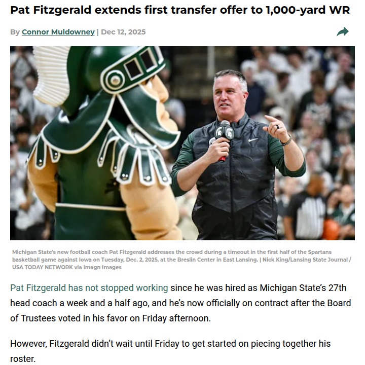 John Camacho+FollowFitz Magic Eyes 1,000-Yard WR for MSUSpartan Nation, Coach Fitz isn’t wasting any time! With Nick Marsh heading out, Fitzgerald’s first portal offer goes to Corey Scott, a D-II standout who just racked up over 1,000 yards. While Scott might not be Marsh 2.0, he brings serious depth and upside if Courtney Hawkins sticks around to coach him up. Fitz knows the WR room needs help—do you think Scott’s the right move to kick off this new era? #Sports #Football #SpartanNation00Share