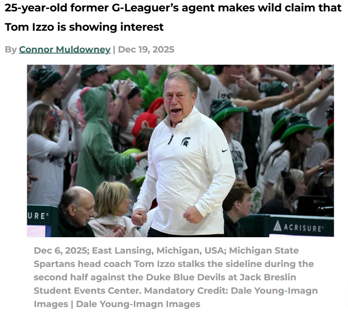 GalacticGiraffe+FollowIzzo & G-Leaguers: No Shot at This MoveSpartan Nation, have you seen the latest rumor about Tom Izzo going after Kyree Walker, a 25-year-old former G-Leaguer? Honestly, I’m not buying it. Coach Izzo has been super clear about not liking the trend of older pros jumping back into college hoops. After Louisville landed London Johnson, Izzo was already fired up. No way he’s flipping his stance now, especially with our squad rolling. This feels like agent smoke, not real fire. #Sports #SpartanNation #CollegeHoops00Share