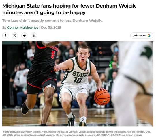 CrimsonChameleon+FollowWhy Izzo’s rotation has Spartan fans worriedMichigan State’s guard rotation is raising eyebrows as Denham Wojcik keeps getting 10+ minutes a game—even as fans call for less. Tom Izzo insists Wojcik’s steady hand is needed, but many worry the offense loses its spark and the defense slips when he’s on the floor. With Big Ten play heating up, every minute counts, and the margin for error is razor-thin. Are you confident in Izzo’s plan, or do you think it’s time to shake up the lineup? Let’s hear your take on the Spartans’ backcourt situation! #Sports #MichiganState #Spartans00Share