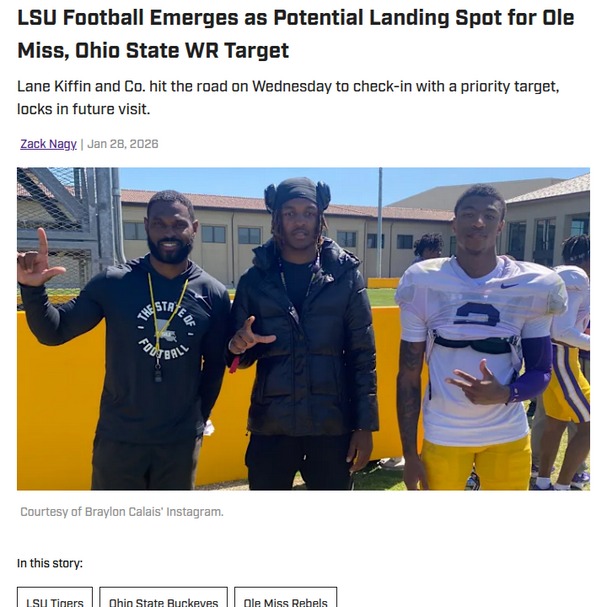Jeffrey Armstrong+FollowLSU steps up chase for Braylon CalaisLSU is making a serious push to keep Braylon Calais, one of Louisiana’s most electric high school athletes, close to home. After back-to-back standout seasons, Calais has become a top national recruit, drawing attention from powerhouses like Ohio State and Ole Miss. With coaching changes shaking up recruiting battles, LSU is rolling out the red carpet for Calais this weekend. His game-changing speed and versatility have fans buzzing—imagine what he could do in Tiger Stadium. What do you think: Can LSU hold off the big names and land this homegrown star? #Sports #Football #LSUFootball10Share