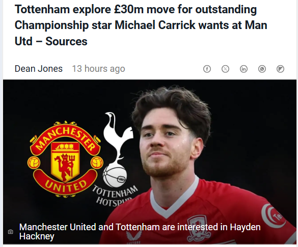 Maurice Miller+FollowSpurs Eye Boro’s Hackney: Will Carrick Swoop?Big transfer buzz around Hayden Hackney! Spurs are circling with a £30m offer, but Boro are digging in, determined not to repeat last winter’s Latte Lath saga. Meanwhile, Red Devils fans, keep an eye out—Carrick is reportedly keen to bring Hackney to Old Trafford for a midfield reunion. With Boro pushing for promotion, will they cash in or hold firm? This could be the biggest sale in Boro’s history if it happens! #Sports #Soccer #Spurs00Share