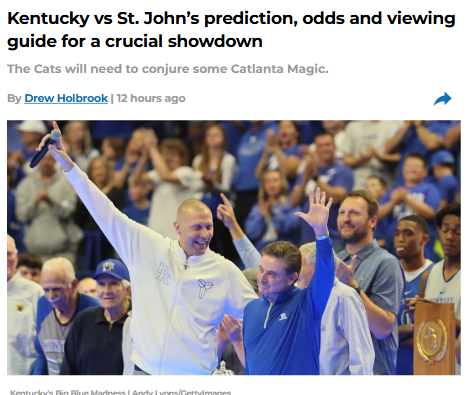 CrimsonChameleon+FollowPitino vs Pope: Kentucky Basketball’s Must-WinBig Blue Nation, this is the one. Rick Pitino and Mark Pope face off in Atlanta, nearly 30 years after their 1996 title run together. St. John’s is a slight favorite, but Kentucky’s season feels like it’s on the line. Can the Cats finally put it together and keep Bryce Hopkins in check? Or will Pitino’s Red Storm add to Kentucky’s woes? With Jayden Quaintance possibly debuting, it’s a true fork-in-the-road moment for both squads. Who you got? #Sports #KentuckyBasketball #StJohns00Share