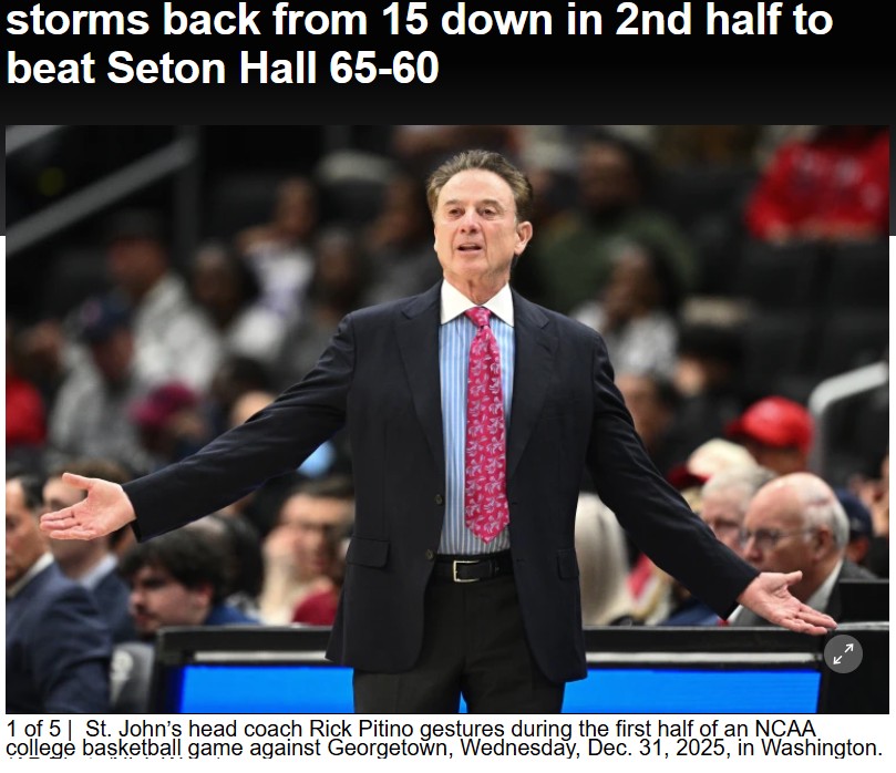 GalacticGiraffe+FollowSt. John’s epic comeback shakes up MSGSt. John’s fans just witnessed a wild turnaround at Madison Square Garden—down by 15 in the second half, the Red Storm roared back to stun Seton Hall 65-60. Dillon Mitchell’s double-double and relentless rebounding powered the surge, while Rick Pitino notched his 899th career win. Even more drama is brewing: Pitino could hit 900 wins this Saturday, facing off against his own son at Xavier. With St. John’s on a five-game tear and sitting just outside the Top 25, do you think this momentum will carry them into the rankings? Let’s hear your thoughts! #Sports #StJohns #MSG00Share