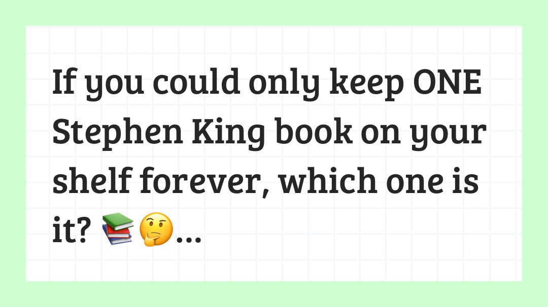 MrsBlunt+FollowIf you could only keep ONE Stephen King book on your shelf forever, which one is it? 📚🤔 #StephenKing #BookTwitter #Reading13Share