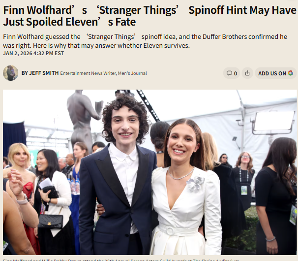 Jason Curtis+FollowDid Finn Wolfhard Just Spoil Eleven's Fate? 👀Finn Wolfhard might've accidentally dropped a major hint about the Stranger Things spinoff—and fans are freaking out! In an old Fallon interview, Finn joked about the crew searching for Eleven, which now has everyone convinced the spinoff could be about finding out if Eleven survived. The Duffer Brothers confirmed Finn guessed the spinoff’s plot, so was this a slip-up or a clever tease? The fandom is totally split! #Entertainment #Movies #StrangerThings00Share