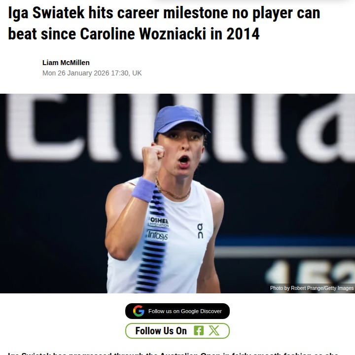 tammy84+FollowSwiatek Chasing Serena’s Record Down UnderIga “The Pole” Swiatek just hit her 50th Grand Slam hard court win at the Aussie Open, making her the youngest to do it since Wozniacki in 2014! Now, she’s set for a spicy quarter-final clash with Rybakina, her familiar rival. If Swiatek keeps this streak alive, she could match a Serena Williams milestone and even complete the Career Grand Slam. Can she make history in Melbourne? #Sports #Tennis #Swiatek00Share