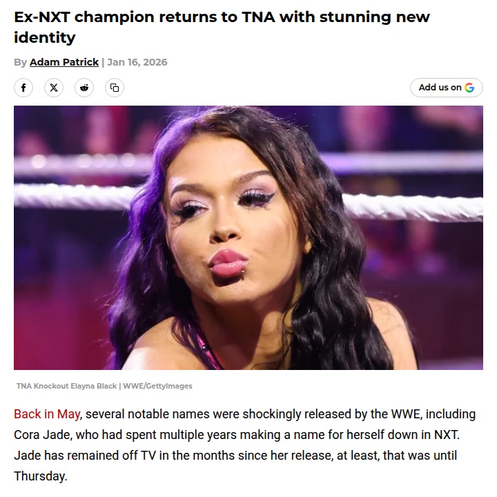 Kayla Mcconnell+FollowElayna Black Shakes Up TNA KnockoutsHuge surprise on Thursday Night iMPACT! as the former NXT standout, Cora Jade, made her TNA return under her old indie name, Elayna Black. Fans are buzzing about her heel alignment, especially after her intro by Daria Rae. With WWE and TNA’s partnership heating up, could we see Black crossing back into NXT soon? This return could spark a new era for the Knockouts division! #Sports #Wrestling #TNAiMPACT10Share