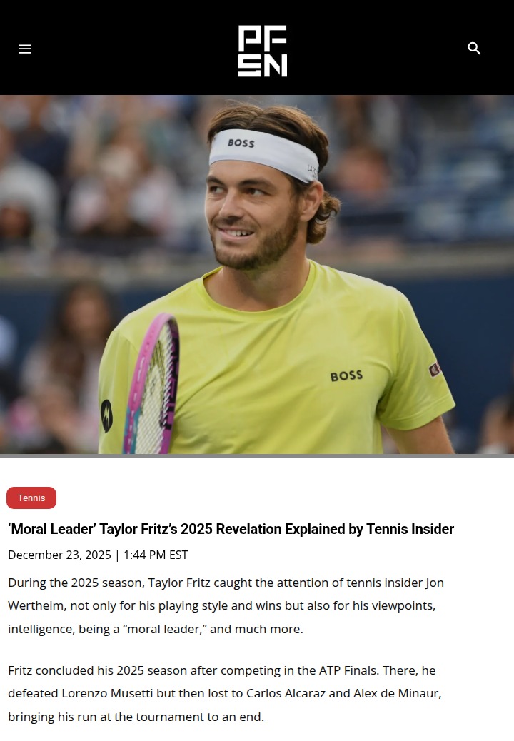 Nicole Baxter+FollowFritz Steps Up as Tennis’ Moral LeaderBig news for Fritz fans! While the former World No. 4 didn’t break records at the ATP Finals, tennis insider Jon Wertheim says 2025 was the year Taylor Fritz really revealed himself—on and off the court. King Fritz’s strong, smart takes have made him a respected voice and a ‘moral leader’ in the game. Can he carry this new reputation into the 2026 United Cup? #Sports #Tennis #TaylorFritz10Share