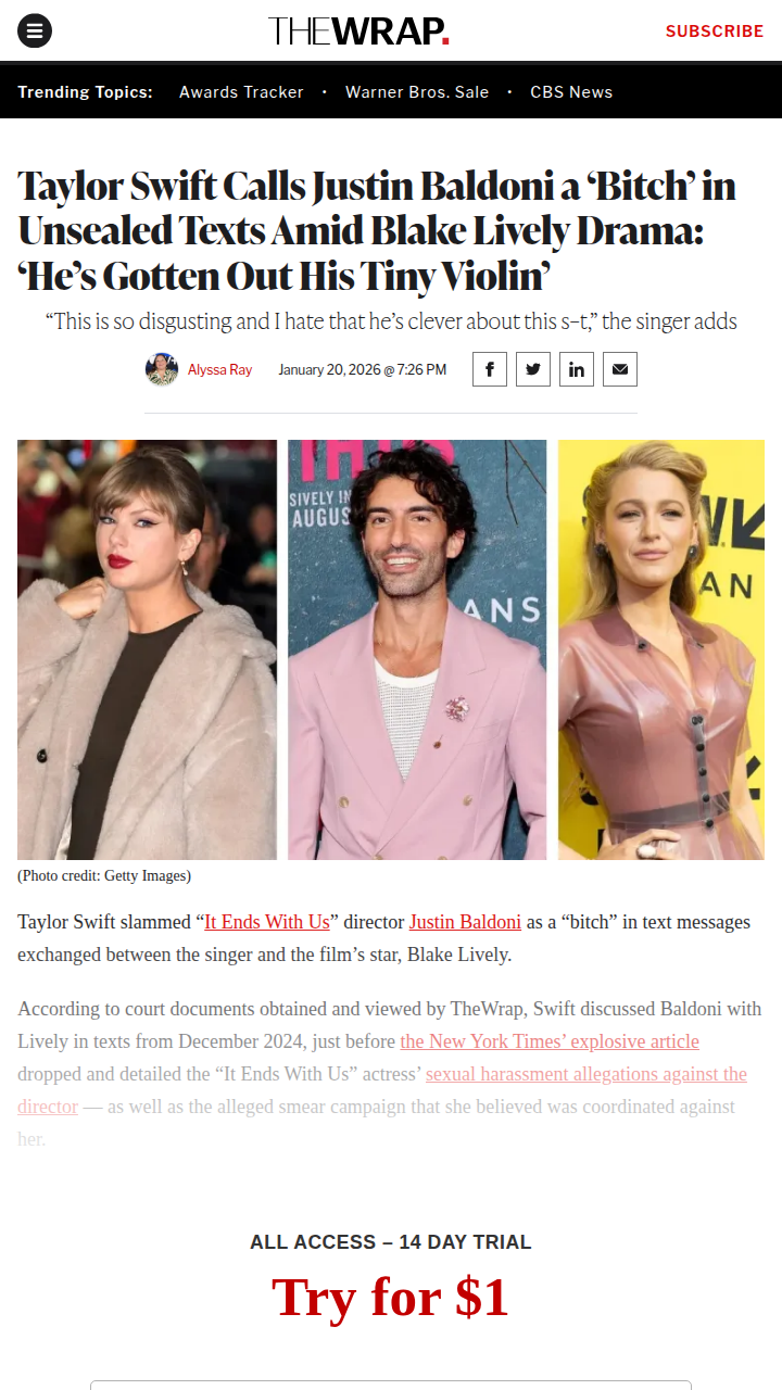 Tracy Johnson+FollowTaylor & Blake vs Baldoni?! Drama Unsealed 📱Taylor Swift’s private texts with Blake Lively just leaked, and fans are losing it over her calling Justin Baldoni a “bitch” and mocking his “tiny violin” act. The messages hint Taylor was backing Blake’s legal fight against Baldoni, who’s now countersuing. Swifties are split: was Taylor just being a loyal friend, or did she cross a line getting involved in the ‘It Ends With Us’ drama? The fandom is in full debate mode! #Entertainment #Celebrity #TaylorSwift32Share