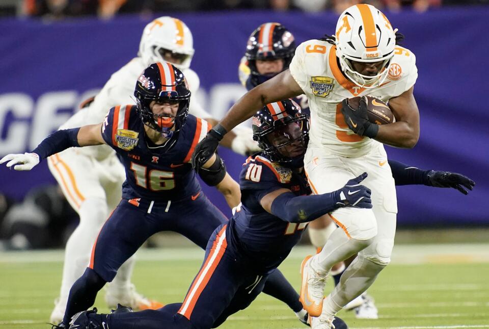 glen25+FollowTennessee vs Illinois: Bowl game shakeupBoth Tennessee and Illinois are heading into the Music City Bowl missing key starters, with NFL draft opt-outs and injuries shaking up the lineups. Tennessee’s top receiver and four defensive starters are out, while Illinois is missing its sack leader and a pair of other starters. Despite the changes, both teams have a shot at making program history—Tennessee could notch a fourth straight nine-win season, and Illinois could secure back-to-back nine-win years for the first time ever. How do you think these roster changes will impact the game? #Sports #Football #TennesseeVols00Share