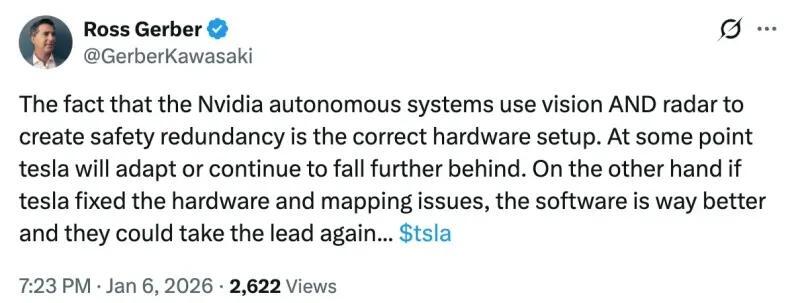 robertocarter+FollowTesla vs Nvidia: Who’s Winning the Self-Driving Race?Grab your coffee—here’s the scoop: Tesla used to be the cool kid in self-driving cars, but now Nvidia’s new AI tech is stealing the spotlight. Ross Gerber, an early Tesla fan, says Tesla’s been napping while Nvidia’s been hustling. The big deal? Whoever nails robot cars first could change how we all get around. If you’re eyeing a future car, keep an eye on which brand is actually delivering on those autopilot promises! #Business #EntrepreneurshipStartup #Tesla00Share